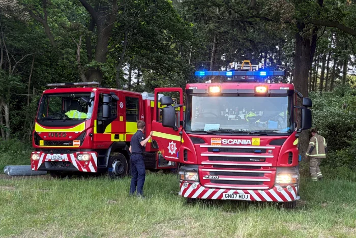 The evening took an unexpected turn when a fire was spotted taking hold in one of the release pens — a consequence of the recent prolonged dry spell. Fortunately, the presence of the group meant the fire was quickly noticed, and the Estate Team sprang into action. With support from Kent Fire and Rescue Services — who arrived swiftly with engines from both Ashford and Faversham - the fire was brought under control. The nearby Rearing Field's supply of fire extinguishers proved crucial in containing the blaze before it could spread further.